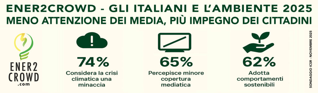 Un sondaggio realizzato per Ener2Crowd da ICSR evidenzia che il 74% degli italiani ritiene la crisi climatica una minaccia, ma il 65% dichiara di percepire una riduzione dell’attenzione dei media.